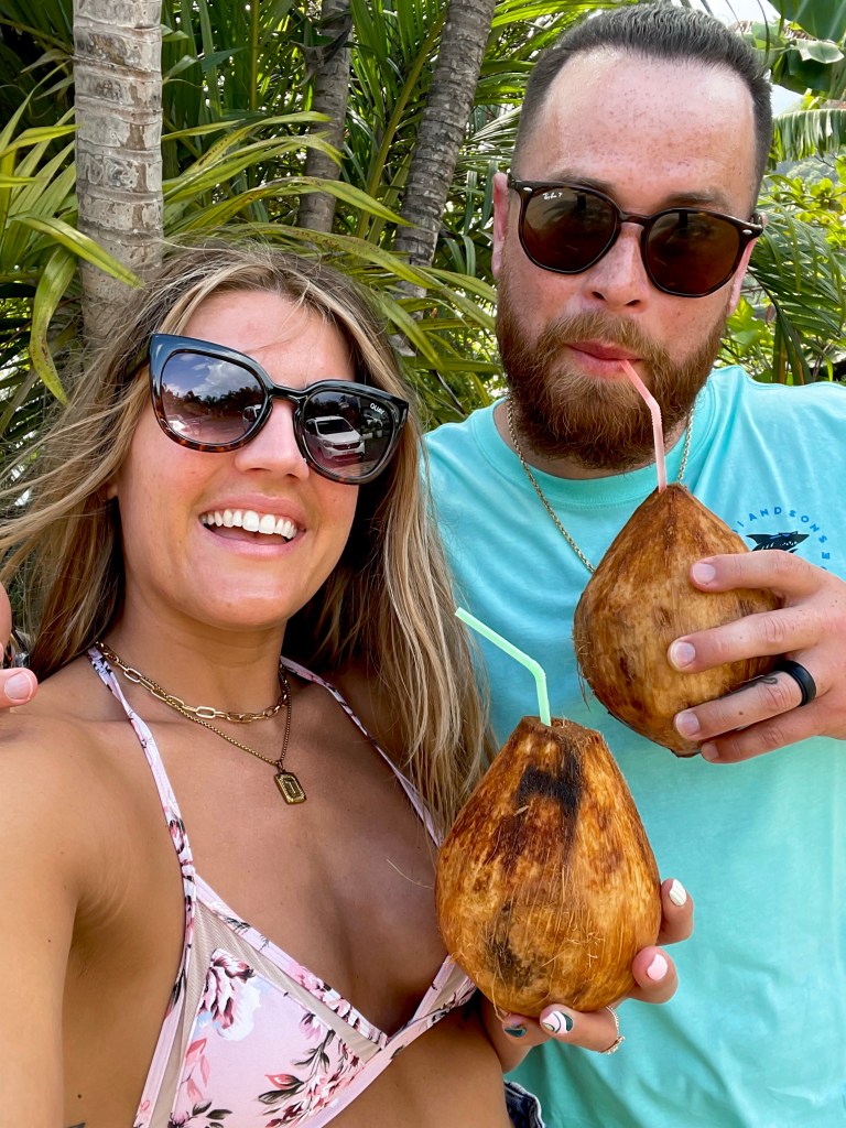 Once we returned to the resort, the rain had cleared up for a bit, so we laid out and soaked up the sun when we could, enjoying our coconuts we had picked up during our drive.