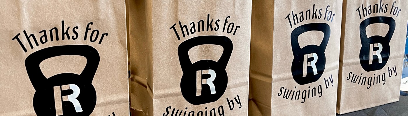 Of course, I could have just used a plain gift bag, but that simply isn’t me, so I designed a sticker (using vinyl and a circuit) with a little kettlebell and Fitness Republic logo. And a pun. Who doesn’t love a good pun.