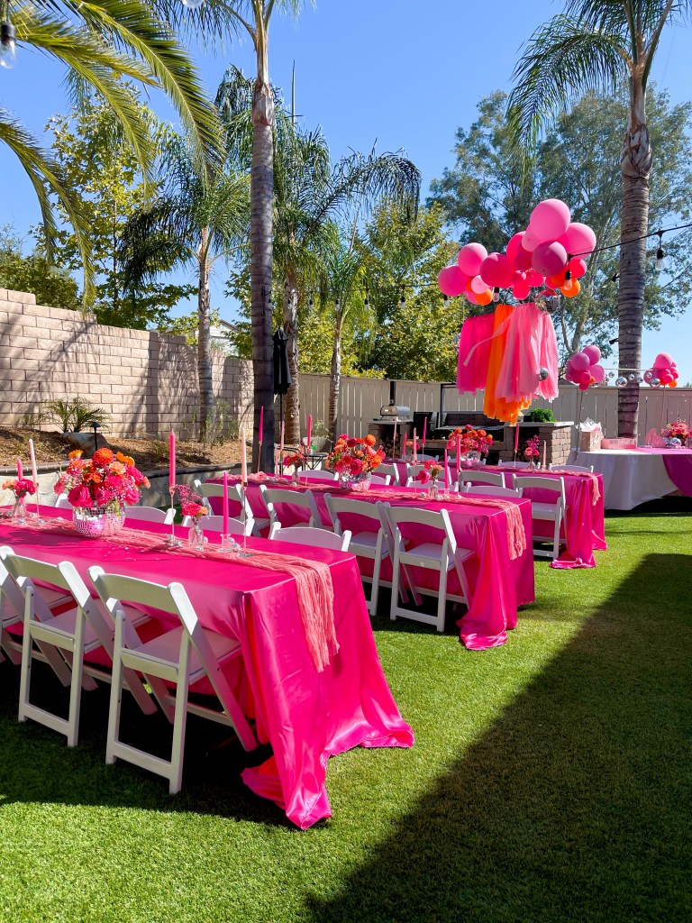There’s so much that I’ve been able to collect over the years, so curating from my office closet is always my first step to see what I can use. And despite already having pink tablecloths, I still bought new ones. Just weren’t the right shade of pink, ya know?