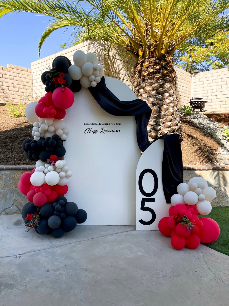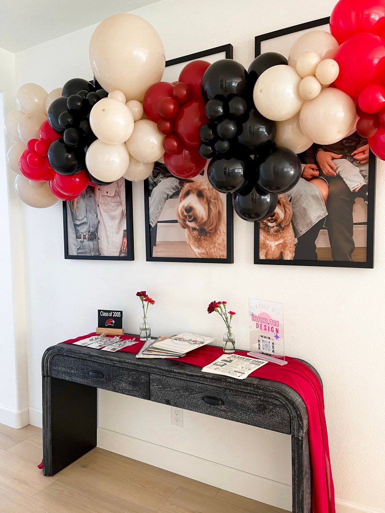 Of course, I couldn’t have a party without my staple backdrop set up, this time including some drapery on the sides between the sets of balloons. Third mistake was after staring at the backdrop for the two weeks prior, I woke up the morning of and finally saw I spelled the school name wrong.